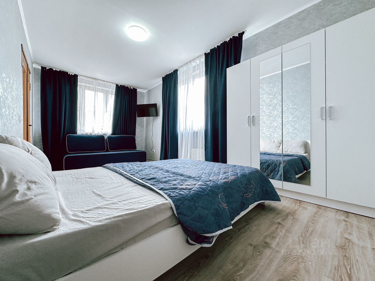 - большая спальня с двуспальной кроватью и раскладным диваном, вещевой шкаф, сплит система, телевизор, скоростной интернет.