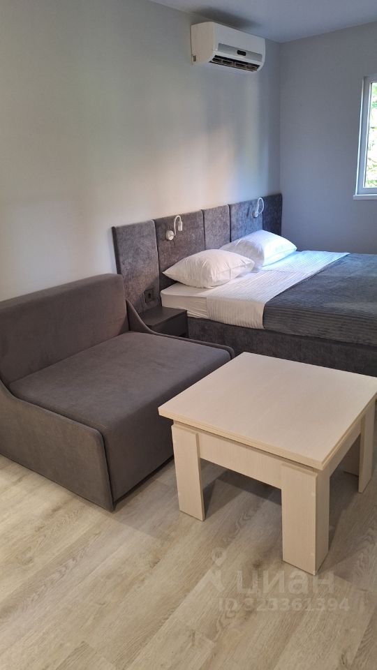 Сдается отдельно стоящий домик на частной закрытой территории, в райском уголке, в далеке от трассы, весь в зелени и выходом на территорию санатория, где можно прогулятся. домик возведен в 2025 году где все новое от стен до мебели. Сделан дизайнерский ремонт, удобные ортопедические матрасы. Кровать можно использовать как двухспальную, так и две односпальные. Журнальный столик трансыормер под обеденный стол. Кресло раскладывается и имеет дополнительное спальное место. Сдается до начала июля. прекрасно подойдет как для 1-2 человек, так и для семейной пары. Также во дворе имеется терраса, мангальная зона и парковочное место.