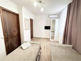 Длительная аренда. 10 номеров, стандарты. На каждом этаже кухня, холодильник, микроволновая печь, гладильная доска, чайник, газовая плита.