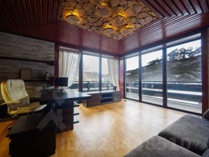 * Рабочий кабинет с панорамными окнами с видом на снежные горы — идеальное пространства для работы или творчества, где вы сможете сосредоточиться на своих задачах.