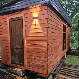 Наши дома — это новые, теплые и уютные помещения, оборудованные всем необходимым для комфортного проживания. В каждом доме есть мини-кухня с микроволновой печью и посудой, шкаф для одежды и удобный двуспальный раскладной диван. В ванной комнате вас ожидают душевая кабина, унитаз с микролифтом и стиральная машина.