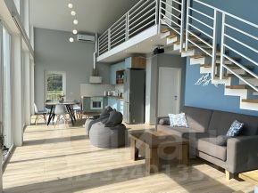 Просторная гостиная совмещена с зоной кухни и зоной отдыха с диваном, мягкими пуфами и огромным экраном проектора. В гостиной можно провести праздничное мероприятие, устроить себе кинопросмотр или поиграть в настольные игры в дружной компании или кругу семьи.