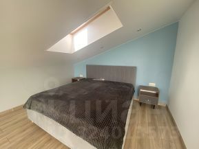 Третья спальная зона находится на втором этаже с мансардной крышей и окном, где можно наблюдать ночное звездное небо.