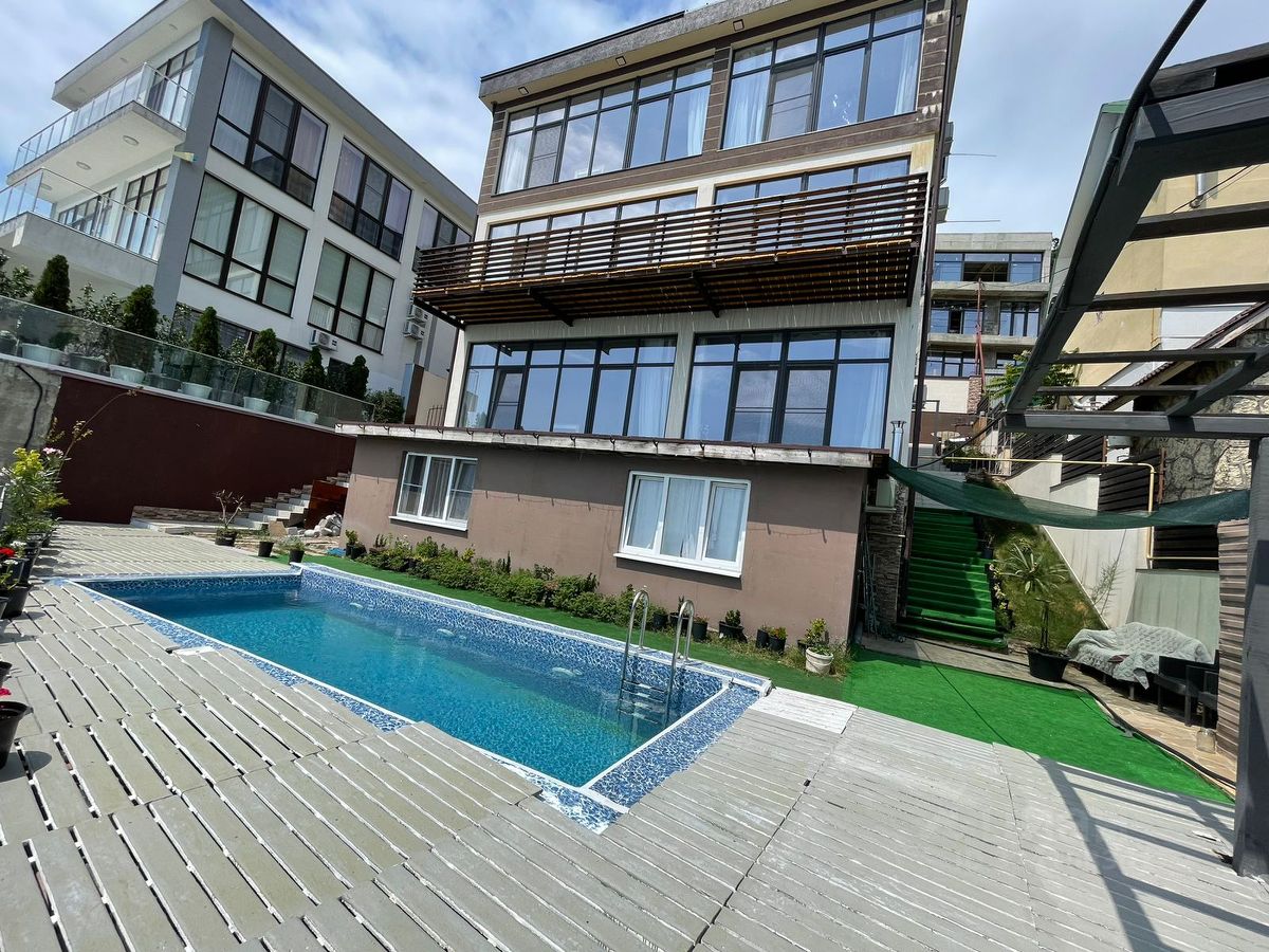 дом с шикарным видом на море и город,в каждой комнате сан узел и кухня,на территории бассейн с подогревом,2 парковачных места, есть все необходимое для отдыха. до моря 15м пешком до пляжа КУБА( признан лутшим в городе) тамже жд станцыя где можно сесть на ласточку и доехать без пробок в алимп парк или красную поляну, остоновкаобшественного транспорта 7м пешком, дом под видео наблюдением