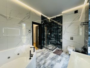 - Основной дом 230 м² + гостевой дом-сауна 60 м² с предбанником и душевой