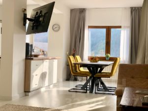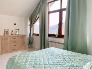 Уютный дом с теплым бассейном с противотокотом и баней на дровах с видом на горы