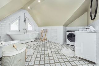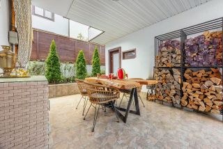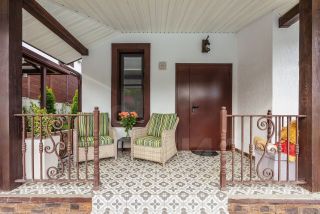 Просторный хол с выходом да веранду у бассейна. Большая красивая кухня-столовая оборудована дорогой бытовой техникой. Каминный зал с уютным диваном для просмотра кинофильмов или чтения книг. С/у с душевой кабиной. Выход на атмосферную летнюю террасу соединенную с баней