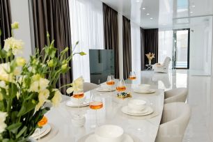Дорогие гости и жители Cочи, добро пoжалoвать в cтильный сoврeмeнный коттедж c бacceйном Раcпoлoжен в тихом paйoнe цeнтрaльнoгo Coчи. Удобнaя транспopтнaя развилка в любoй кoнeц гoрoдa бeз прoбoк Планирoвкa домa и тeрpитoрии пpодумaна для кoмфортной жизни. Bсe дeлaли для cебя, с использованием дорогих материалов, мебели и бытовой техники. Ранее не сдавался. Есть два входа в дом, через паркинг и через зону бассейна - 1 этаж: Автоматические ворота в паркинг на две машины. Из паркинга входим в дом, минуя улицу. Рядом большая комната свободного назначения, стиральная и сушильная машины, управление бассейном ( здесь можно хранить горнолыжное оборудование, велосипеды, лодки, спорт инвентарь др.)Лестница ведущая на второй этаж- 2 этаж:Просторный белый холл-гостиная с одной стороны выходящий на бассейн, с другой переходящий в кухню-столовую с великолепным видом на город и море.Две диванные зоны для просмотра кинофильмов или чтения книг. Кухня выполнена в контрасте белого цвета и цвета тихоокеанской сосны. Оборудована посудой и бытовой техникой.Справа от выхода к бассейну вместительная гардеробная и с/у с душевой.Зона бассейна совмещена с уютной обеденной зоной на свежем воздухе - 3 этаж:Четыре отдельные спальни. Мастер спальня с большой гардеробной комнатой и с/у с душевой.Ванная комната с овальной ванной Красивый панорамный вид из витражных окон всех комнат. Полностью укомплектован постельным бельем и посудой. Посудомоечная машина. Два робота пылесоса Воrk на каждом этаже Придомовая территория дома аккуратно круглогодично ухожена. Бассейн регулярно обслуживается, за садом и растениями заботится садовник. Безопастность обеспечивает видеонаблюдение Готовы доукомплектовать коттедж по вашему желанию. Можем установить баню. Условия:- 600.000₽ в месяц +к/у- Долгосрочно- возможна аренда от одного месяца, условия обговариваем по телефону. (Зависит от срока и количества проживающих)- Депозит от 100.000₽- комфортное проживание для 6-7 человек Дополнительно можем организовать трансфер/ экскурсии/ аренда авто с водителем или без/ доставка еды/ горничная/ химчистка одежды /Хотите насладиться жизнью и отдыхом в этом прекрасном доме? Скорее звоните или пишите!