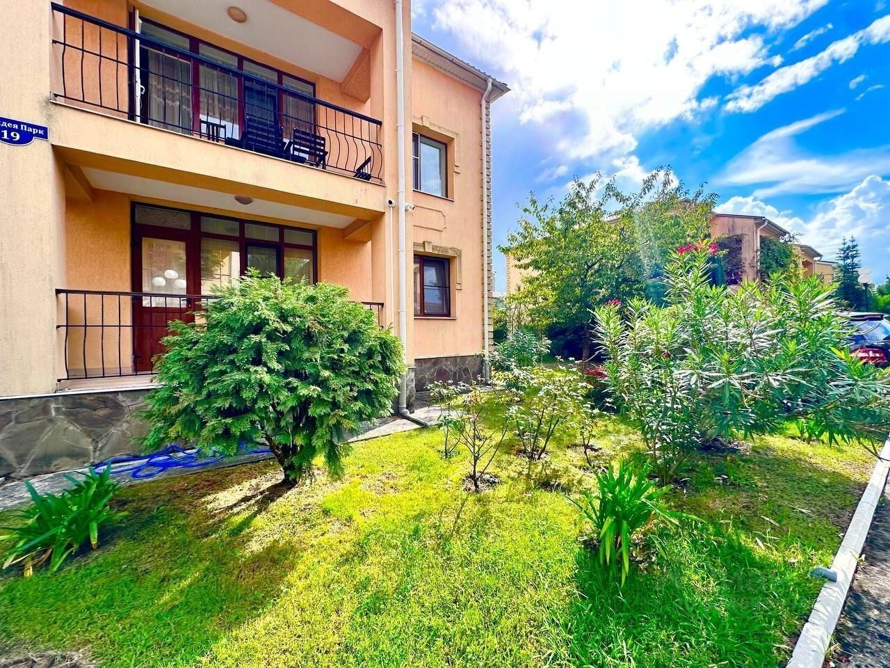 На территории коттеджного поселка выполнено ландшафтное озеленение, есть плодоносные деревья, мангальная зона, зона отдыха. Из окон дома открывается шикарные виды. Вы сможете находится здесь в уединении с природой, в тишине и спокойствие, в 100 метрах от моря, отличное соседство.