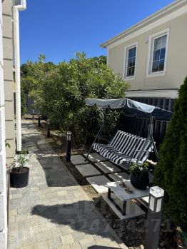 • Огороженный участок, декоративные туи, цветущие деревья олеандров.