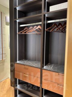 • Просторная гардеробная комната со встроенными системами хранения, зеркалом в полный рост и выдвижными модулями