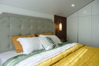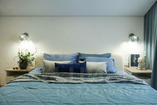 - спальня 1 спальное место 180/200 ортопедический матрас аскона средней жесткости умные прикроватные тумбы с авто подсветкой и беспроводной зарядкой. Шкаф-гардероб и диван для отдыха, шторы с электроприводом;