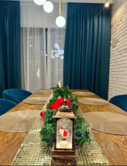 На 1м этаже - прихожая, стильная кухня с островом, барные стулья, столовая зона, санузел, духовой шкаф и электро-плита, вся необходимая посуда.