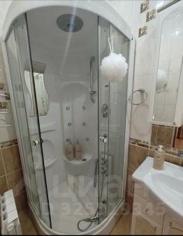 Совмещённый санузел с душевой кабиной и стиральной машиной.