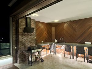 3-й этаж: зона отдыха с сауной, душевой, купелью с подогревом и зоной для барбекю