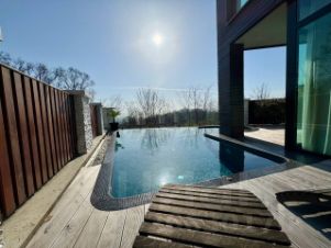 Стильный дом с теплым бассейном и сауной с панорамным видом на море