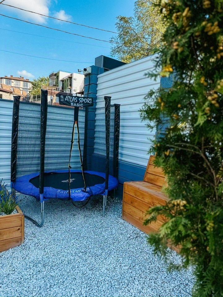 - Всё для семьи - детский батут во дворе, двухъярусная кровать, игрушки, настольные игры и книги в доме.