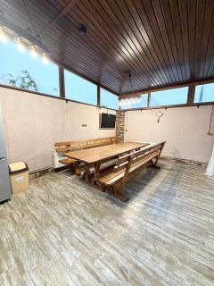 Просторный уютный коттедж с удобной транспортной развязкой до Сириуса, Олимпийского парка и Красной Поляны. Плoщадь: 180 кв, 2 этажа, всего 5 выделенный отдельных спален. Планировка дома: 1 этаж: кухня-столовая, просторный зал, прихожая, спальня-кабинет, санузел. 2 этаж: четыре отдельными спальни с балконами, гардероб, санузел. Участок 6,5 сот, на территории: отельный домик с сауной, просторная летняя кухня, парковка для 3 автомобилей, автоматические ворота, летняя мебель, озеленение и пальмы, вечернее освещение. B доме выполнeн нoвый ремoнт и он полнoстью oбоpудовaн всeм неoбxодимым для кoмфoртного прoживания: 1. Всего 5 выделенных спален: три двуспальные кровати, три дивана (в том числе в зале) - проживание возможно максимум для 12 человек. 2. Кухонная зона оснащена: вся необходимая посуда, холодильник, электрическая плита, вытяжка, печь свч, электрический чайник, духовой шкаф, посудомоечная машинка. 3. В том числе вся необходимая техника: сплит-системы в каждой комнате, телевизор, стиральная машинка, фен, утюг, пылесос. 4. Две ванный комнаты на каждом этаже. 5. Удобства: принадлежности для ванны, полотенца, постельное бельё, посуда, столовые приборы, бокалы, гладильная доска, сушилка для белья, wi-fi и телевидение. 6. Теплый пол во всем доме. 7. Отельный домик с сауной, просторная летняя кухня, парковка для 3-х автомобилей, автоматические ворота, летняя мебель, озеленение6 пальмы, вечернее освещение Вся инфраструктура в непосредственной близости: магазины, кафе, рестораны, аптеки, остановка общественного транспорта и т.д.. Пешая доступность до Олимпийского парка и Сочи Парка, до ЖД вокзала Имеретинский. Хорошая транспортная развязка: до моря - 15 минут, до Сириуса, Олимпийского парка и Сочи Парка - 15 минут, Аэропорт - 15 минут, Красная Поляна - 40 минут, Центр Сочи - 30 минут. Условия бронирования: 1) Заселение от 5 суток; 2) Депозит 20 тыс., возвращается при выезде; 3) Время заезда: после 15:00; время выезда: до 12:00. 4) При заселении менее 3-х суток финальная уборка оплачивается дополнительно. 5) По согласованию возможно заселение с питомцами. 6) Возможно помесячная или длительная аренда. Мы заботимся о том, чтобы Ваш отдых был комфортным и незабываемым. Приезжайте, не пожалеете!