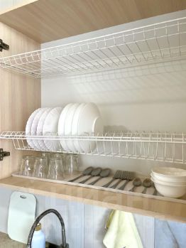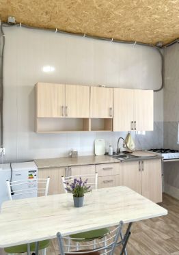 Кухня полностью оборудована: микроволновка, посуда и всё необходимое для готовки
