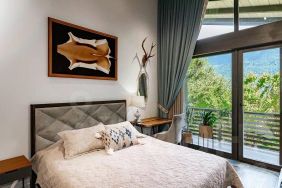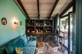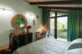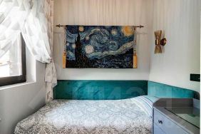 2 этаж: 2 больших спальни с выходом на балкон с чудесным видом на Кавказские горы, 1 маленькая детская спальня и гостиная с выходом на второй балкон. В гостинной установлен 2-х спальный диван с очень удобным спальным местом.туалетная комната с душем.
