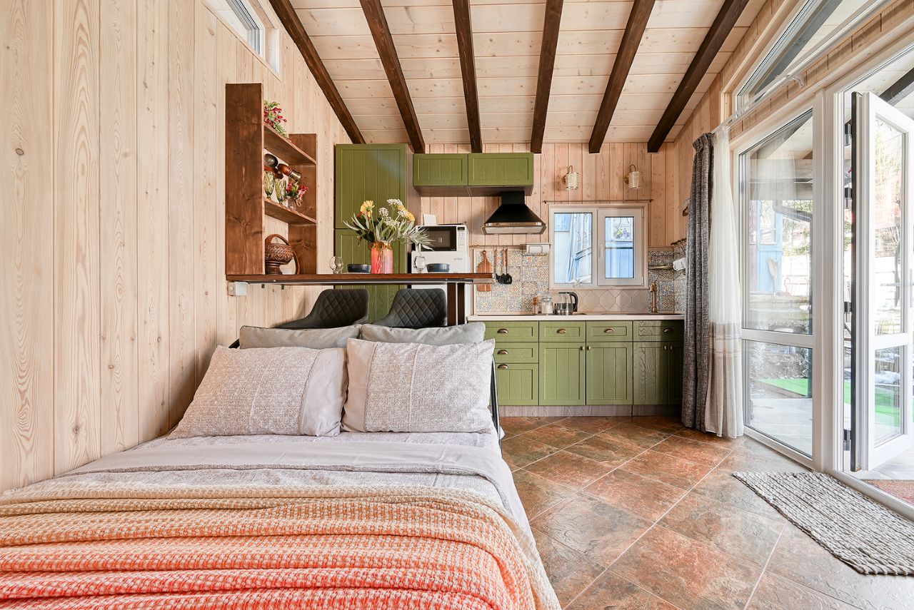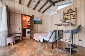 терраса с мебелью и видом на горы рядом прокат, магазин продуктов, СерфКофе, рестораны автобусная остановка теплый пол