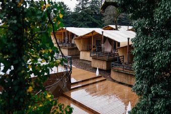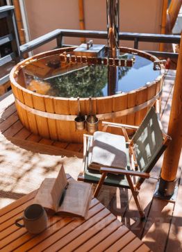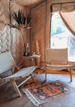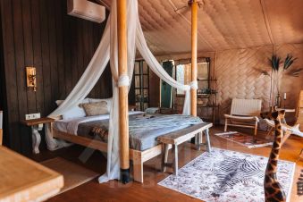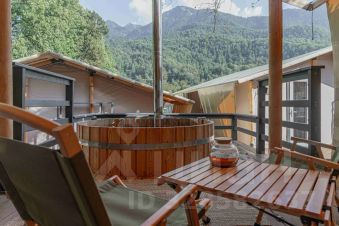 Просторный и комфортный шатёр, совмещающий романтику отдыха на природе и современные удобства гостиничного номера. Множество интерьерных деталей и мебель в светлых тонах отсылают к колониальному стилю. Внутри вы найдёте большую кровать с ортопедическим матрасом и зону отдыха с диваном, который можно использовать как дополнительное спальное место. Для вашего удобства в номере оборудовано комфортное и стильное рабочее пространство, чайная зона и мини-бар. К услугам гостей собственная ванная комната, премиальная краснополянская косметика, халаты и тапочки. Снаружи —просторная терраса с которой открывается панорамный вид на горы, с купелью на дровах, качелями и шезлонгами, где можно наслаждаться свежим воздухом, тишиной. Прекрасно подойдёт для семейного отдыха и романтических выходных.