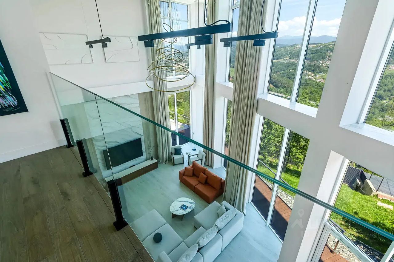 Архитектура дома говорит об одном - Воздух! Высокие потолки в гостиной (8 метров), витражное остекление по всему периметру и продуманные пространства для всей семьи или уютного уединения.