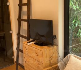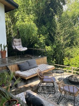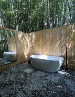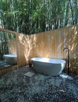 В доме есть всё необходимое. Ванна в бамбуке во внутреннем дворике.
