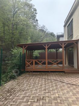 Не первом этаже просторная гостинная с выходом на свою террасу , место для мангала и душевных посиделок !