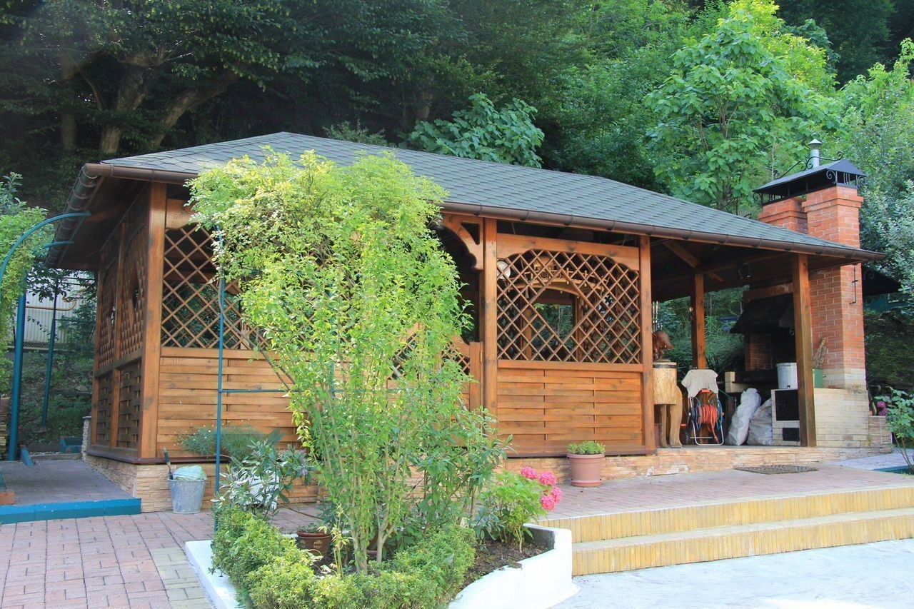 кв.м., с санузлами и гардеробными комнатами. Спальная комната с выходом на юго-восточную сторону имеет балкон площадью 16 кв.м. с прекрасными видовыми характеристиками. На 3 этаже, также, расположены, кладовые, техническое помещение для теле-видеоаппаратуры, мини-кухня. УЧАСТОК: На земельном участке имеется ухоженный сад, с фруктовыми деревьями, палисадник-цветник , теплица для круглогодичного выращивания овощей, а также большая беседка площадью 50 кв.м. с водоснабжением, электричеством, мангалом и русской печью. Двор частично мощен брусчаткой, имеются удобные подъездные пути. Характеристика домовладения