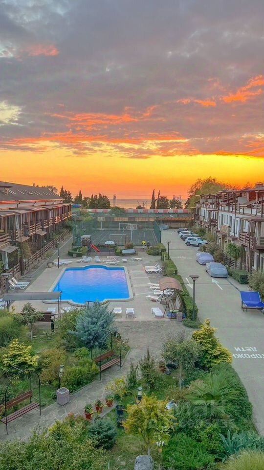 Парковая территория Адлер курорт, большой внутренний двор с детской площадкой и футбольным полем
