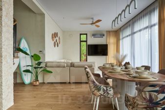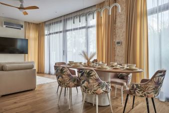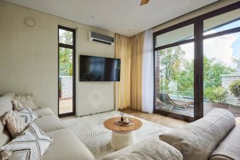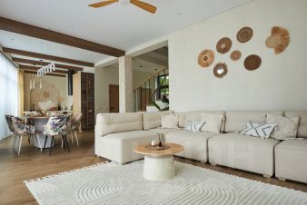 300 м² продуманного до мелочей пространства на ухоженном участке в 4 сотки — здесь балийская философия единения с природой ощущается в каждой детали. Комнаты плавно перетекают друг в друга, дерево, камень и свет создают атмосферу, от которой выдыхаешь с первой минуты.