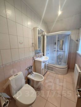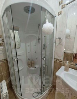 Совмещённый санузел с душевой кабиной и стиральной машиной.