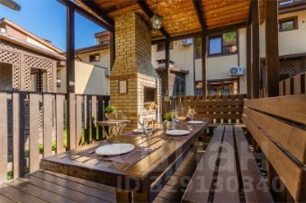 На первом этаже расположена кухня с обеденной зоной, уютная гостиная с диваном (спальное место для двух человек), санузел, помещение для спортивного инвентаря, персональная беседка с мангалом и принадлежностями для приготовления еды на углях. На втором этаже две спальни (одна двухместная кровать, две одноместные кровати), 2 просторных санузла с большой ванной/душем. Балкон - столик и два стула на открытом воздухе. На мансардном этаже — спальное место для двух человек. Вместительность виллы до 8 человек.