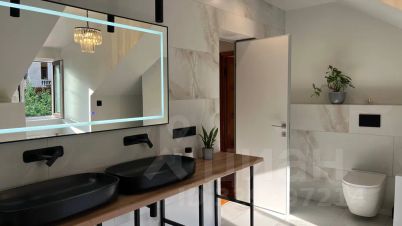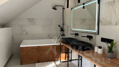 * на третьем этаже две спальни, ванная комната, в которой размещены две раковины и большая ванная.