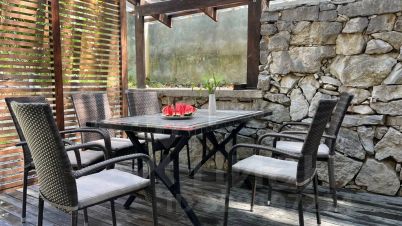 На территории бассейн, детская площадка, зона для шашлыков. Также для активного отдыха есть ракетки для бадминтона, мяч для футбола и волейбола.