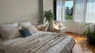* на втором этаже уютная гостиная с большим диваном и с действующим камином для душевных разговоров и теплых семейных вечеров. Вместо телевизора проектор и большой экран для просмотра любимых фильмов, большая современная кухня-столовая с холодильником, плитой, вытяжкой и посудомоечной машиной и две уютные стильные спальни с удобной мебелью и приятным постельным бельём, санузел и душевая комната.