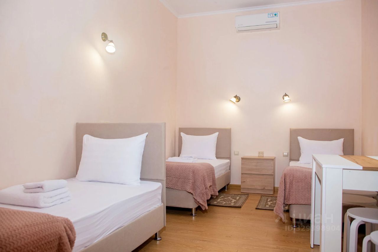 Детская - три односпальных кровати, прикроватная тумбочка, стол, три стула, графин, стаканы, шкаф с вешалками, телевизор, кондиционер.