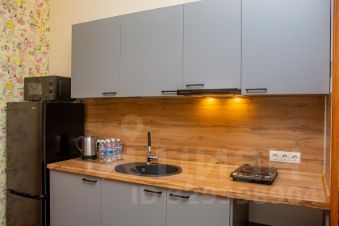 Кухня - рабочая панель, индукционная плита, микроволновая печь, холодильник, вытяжка, чайник, набор посуды