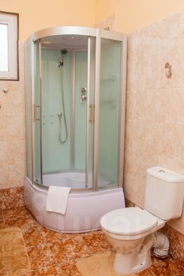 Ванная комната - душевая кабина, раковина, унитаз, биде, стиральная машинка, набор полотенец (банное, лицевое, пляжное, полотенце для ног), халаты, косметические принадлежности, фен.