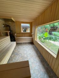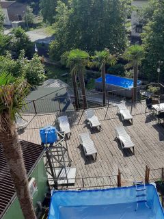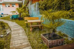 На территории гостевого дома "МиГ": домашняя столовая, шашлычная, детская площадка, 2 бассейна, зоны для загара с бесплатными шезлонгами, панорамная баня, мангал/зона барбекю, своя бесплатная парковка (редкость для Сочи), а также небольшой живой уголок с курочками и кроликами.