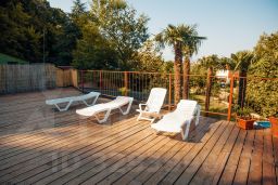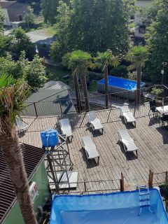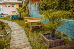 На территории гостевого дома "МиГ": домашняя столовая, шашлычная, детская площадка, 2 бассейна, зоны для загара с бесплатными шезлонгами, панорамная баня, мангал/зона барбекю, своя бесплатная парковка (редкость для Сочи), а также небольшой живой уголок с курочками и кроликами.