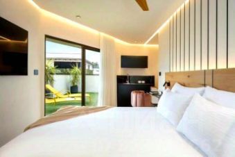 На территории расположены бассейн, зона барбекю, ресторан и детская комната — всё, что делает отдых гостей максимально комфортным и привлекательным.