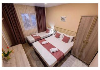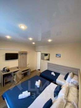 Гостевой дом 15 номеров, горячий бассейн на крыше, температура воды до 36 градусов зимой, первая линия от моря 250 метров, общая кухня, комната для персонала, собственная прачка, котельная. номера все оборудованы всем необходимым, санузел, кондиционер, телевизор, холодильник и т.д.