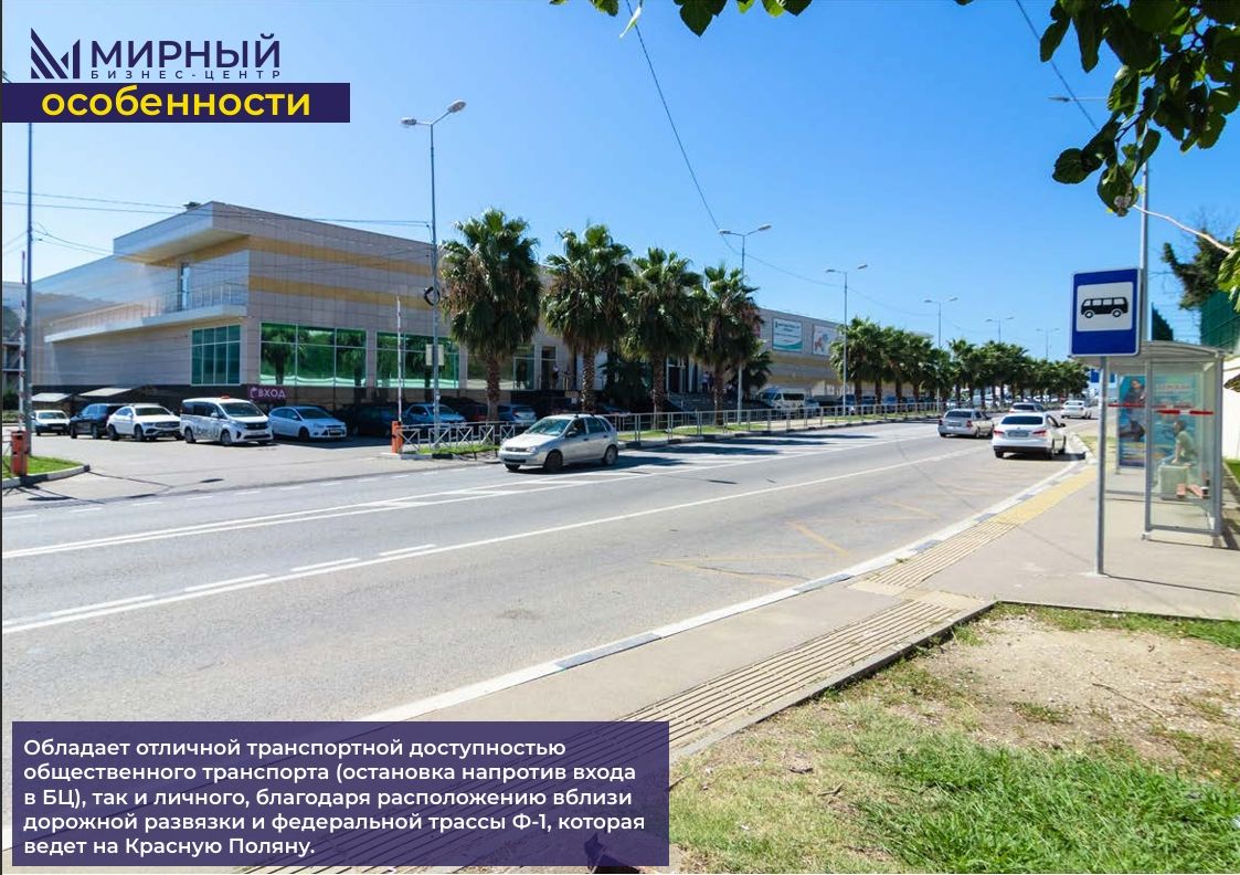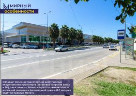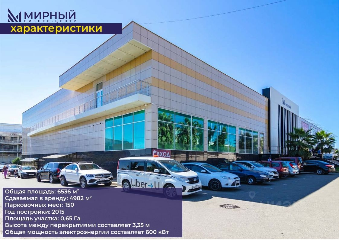 Бизнес-центр "Мирный" в Сириусе представляет собой современное и удобное для бизнеса здание, расположенное в стратегически важном районе рядом с Олимпийским парком и жилым комплексом "Имеретинский". Он обладает общей площадью 6536 квадратных метров, из которых 4982 квадратных метра предлагаются в аренду. Устойчивый приток потенциальных клиентов обеспечивается близостью крупного жилого комплекса и высокой плотностью населения.