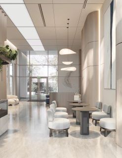 Архитектура вдохновлена морскими волнами: фасады плавно парят над городом, подчёркивая эстетичность и элитарность проекта.