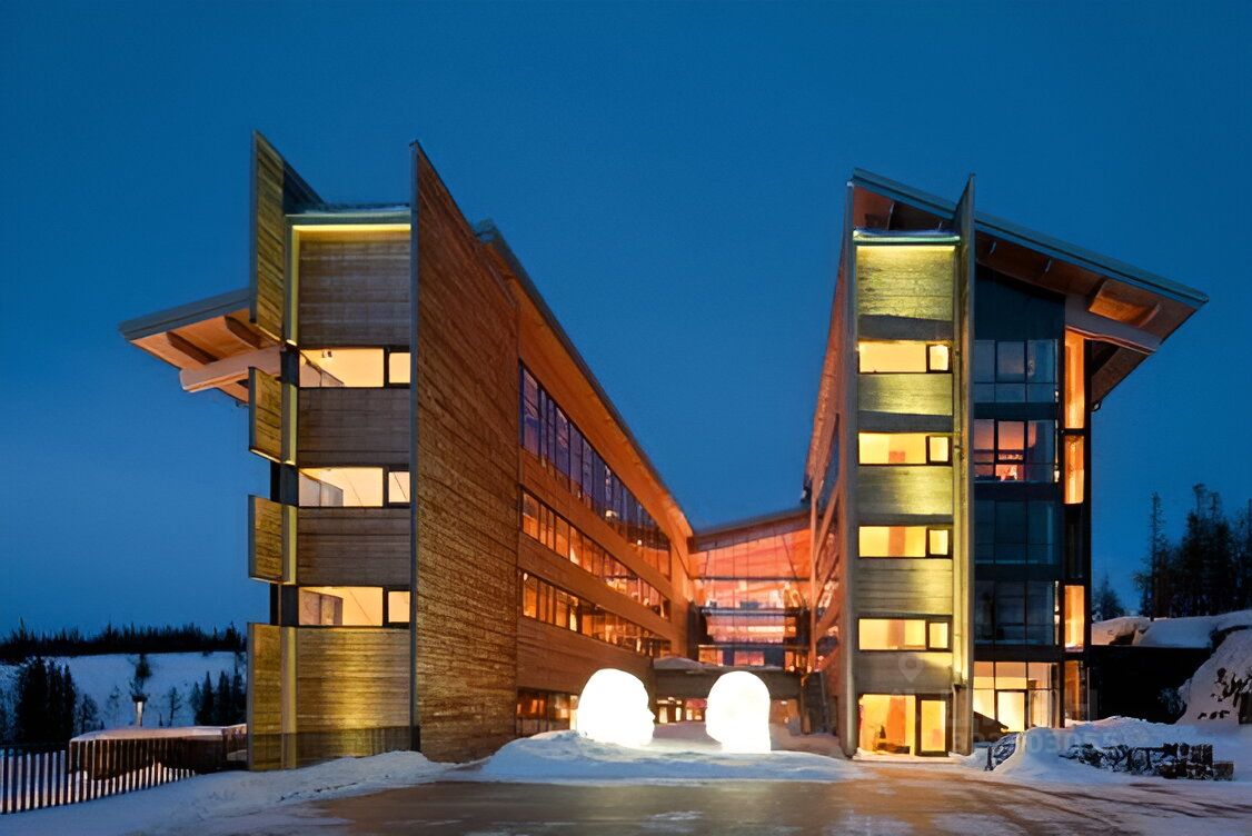 - Гостиница с рестораном до 200 номеров (2 корпуса) с видом на выкат Президентской трассы Восточного склона курорта и Байкал;