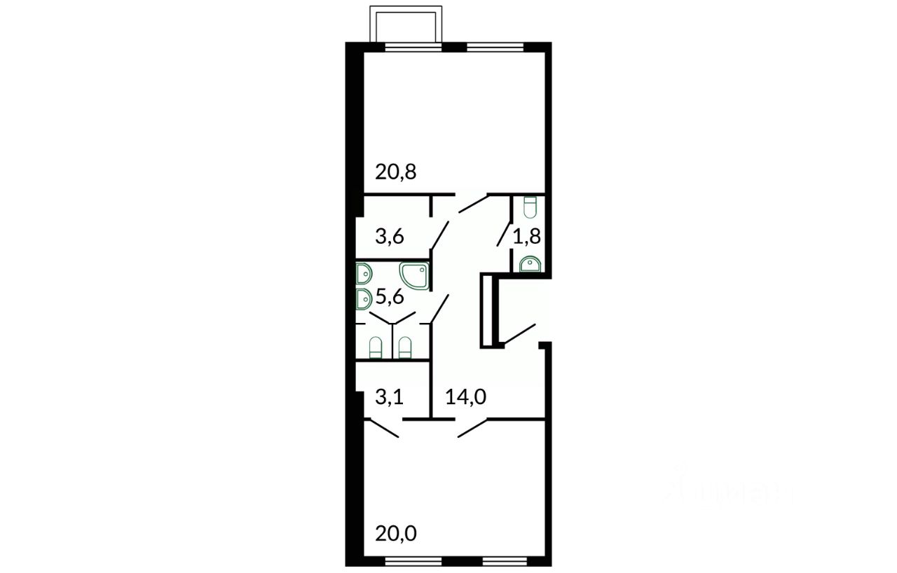Площадь69,8 м²