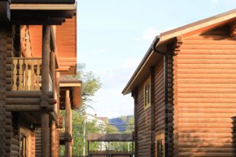 Каждый двор — отдельный дом из настоящих таёжных брёвен