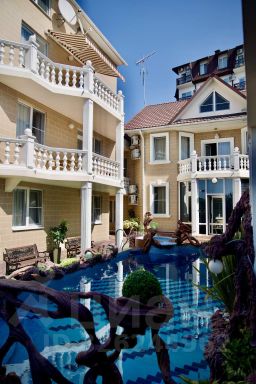 На участке 730 кв. м., под гостиничный бизнес расположены, три здания общей площадью 739,6 кв. м.